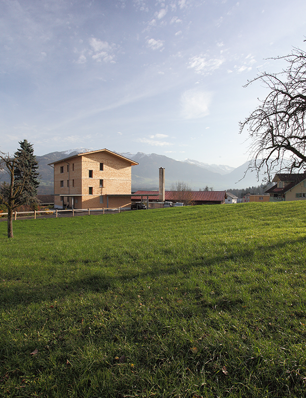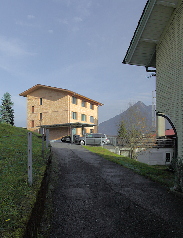 An der Siedlungsgrenze gelegen, kommt dem Gebäude eine vermittelnde Rolle zwischen ruralem Kontext (bergwärts) und heterogener Siedlungsstruktur (talwärts) zu. Seine klare Struktur und die Fassaden aus regionalen Fichtenschindeln schaffen einen für diesen Ort angemessenen, ruhenden Pol.