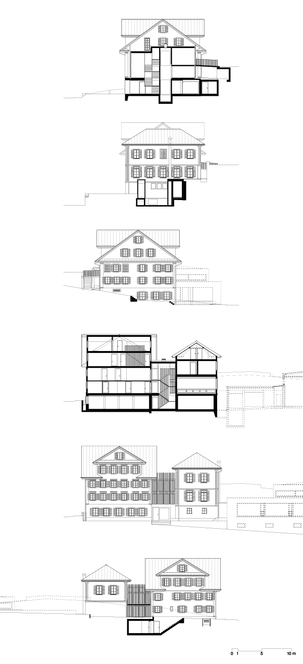 Ansonsten verfolgt die Rückführung in den Zustand 1891 unter konsequenter Vermeidung von markanten Fassadenveränderungen das Ziel einer vom Bestand ausgehenden, ganzheitlichen Gestalt.
