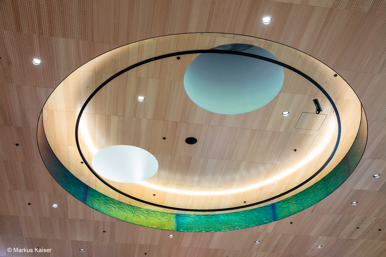 In order to achieve a balanced look and increase the visibility, the architects have developed a higher, representative entrance. Made of glass, it is also visible at night when the interior is illuminated and shines towards the exterior. The new facade made of black steel pays homage to the city of Bärnbach and its long tradition of coal mining. It extends in two gentle waves from the glazed entrance over the entire surface of the building.