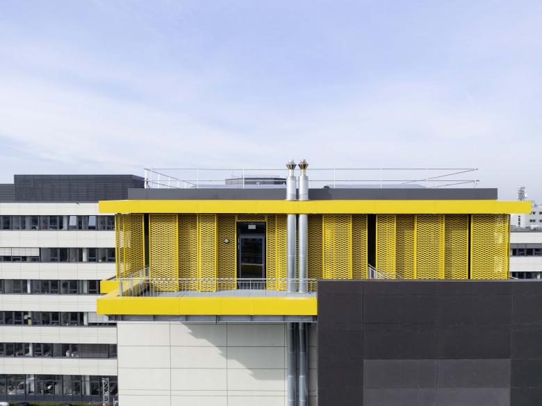 The extension offers new offices for the business faculty as well as open space and creative areas for all students. The Münster UAS has around 592 square meters more space available at this location. Visually, the new fifth floor is set apart by a striking façade with fixed solar shading made of expanded metal, which reduces solar heat gain in summer.
