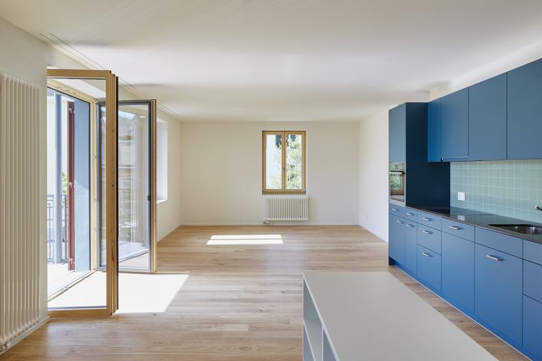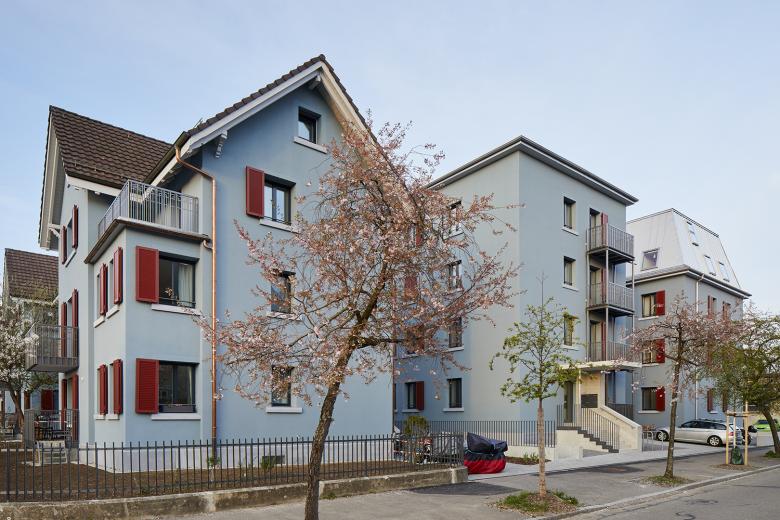 Die ehemalige Tricotfabrik Nägeli, bestehend aus fünf Gebäuden wird seit den 80 er Jahren zu reinem Wohnen genutzt. 2018 wurde durch umfangreiche Sanierungsmassnahmen der ehemalige Charakter der Fabrikationsgebäude wieder zum „Leben erweckt“. Dies spiegelt sich heute in der Terracotta-Fassade des Hauptgebäudes mit Flachdach, in den loftartigen Wohnungen mit hohen Räumen und alten gusseisernen Stützen und in der Umgebung mit chaussierten Flächen wieder. Die schon im Ursprung als Büro-und Wohnraum genutzten Kopfbauten und Punkthäuser mit Steil-und Mansarddach runden die Fassaden mit einem petrolfarbenen körnig-homogenen Putz ab. Feinputzige Gewände und ziegelrote Klappläden umrahmen die Fenster.