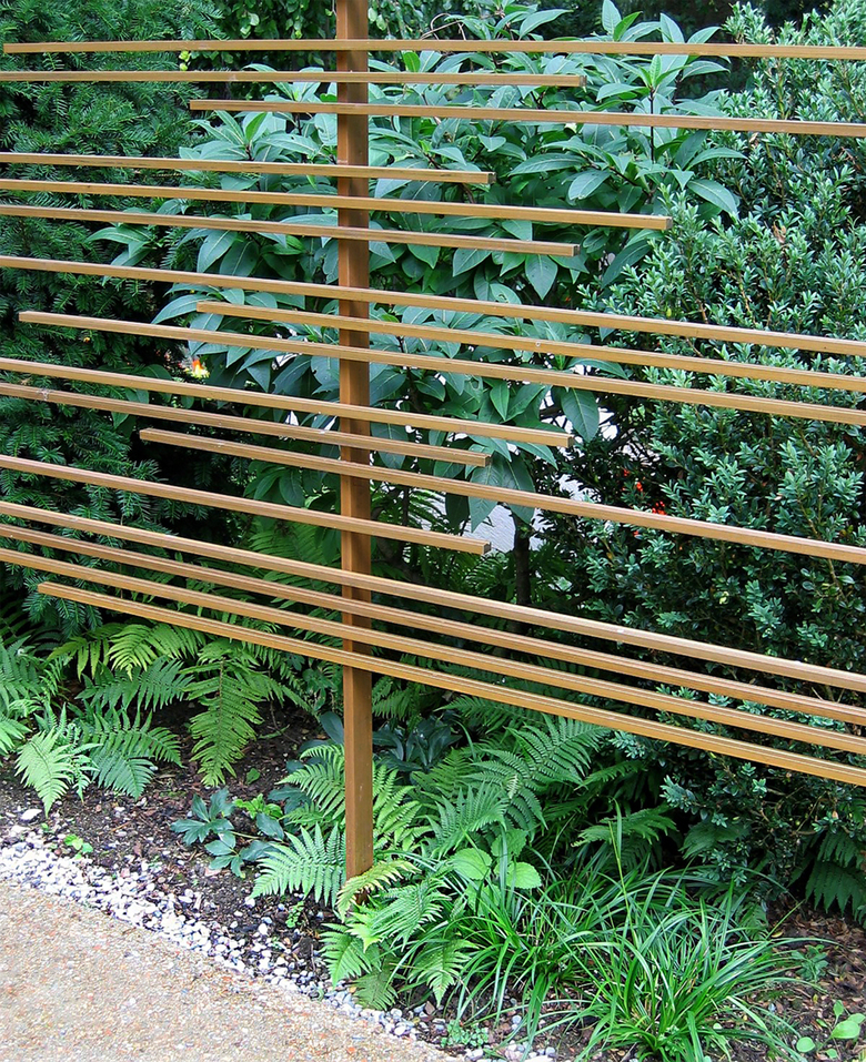 Eine Bronzestangen-Wand, eingespannt zwischen zwei versetzt angeordneten, ungleichen Stampflehmmauern, bilden zusammen mit der Trasskalk-Bodenplatte den Raum zum Betreten und zum Gedenken. Eine hauptsächlich immergrüne Hecke mit Waldstaudensaum bildet Hintergrund zu den Bronzestangen, worauf die Inschriften graviert sind. Von der Belagskante erstreckt sich das mit Buchs- und Schneeflockensträuchern eingefasste Urnenfeld zum Waldrand hinauf.