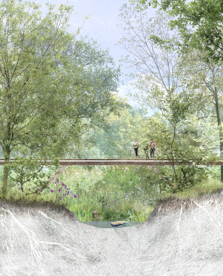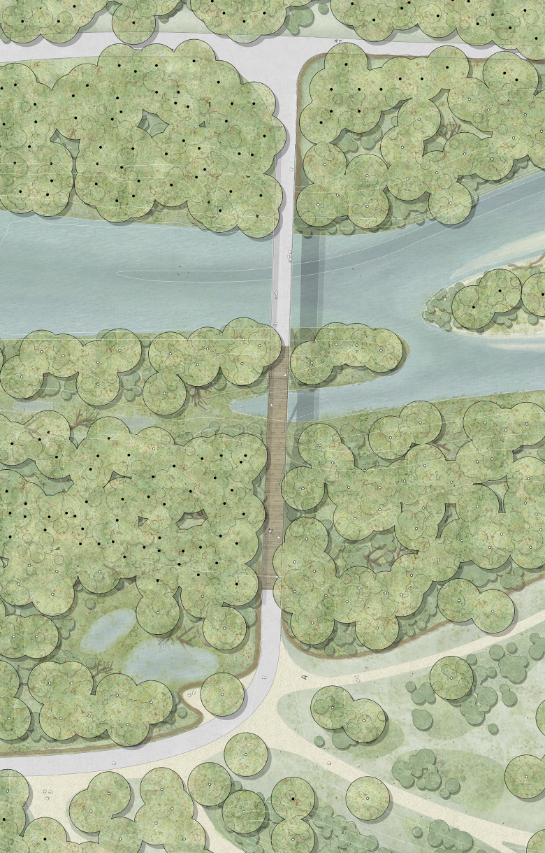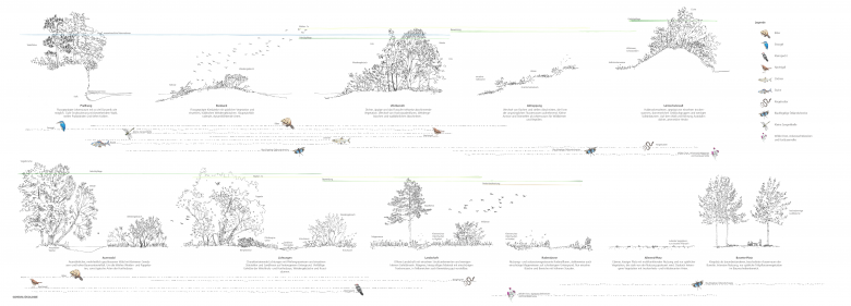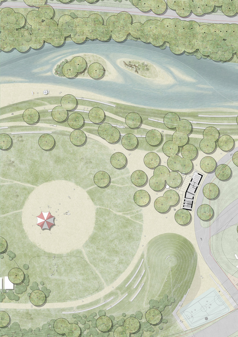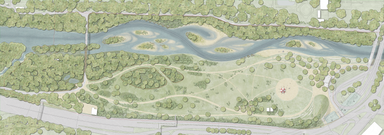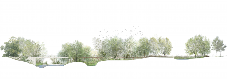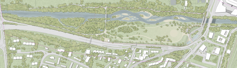Das Schänzli – heute ein wenig attraktiver Raum zwischen Siedlungsgebiet, Verkehrsbauten und korrigiertem Flusslauf – wird in einen neuen Natur- und Erholungsraum transformiert. Dabei werden die bestehenden Naturwerte – die Birs, der alte Baumbestand und das Naturschutzgebiet Vogelhölzli – integriert, erweitert und nachhaltig entwickelt, die Birs wird revitalisiert und der Flussraum aufgeweitet. Die gesamte Gestaltung orientiert sich an ursprünglichen Lebensräumen des Areals, um diese neu zu interpretieren. Großzügige Weiten alternieren mit kleinräumigen Bereichen und wertvollen ökologischen Nischen. So entsteht eine ungezwungen erlebbare Anordnung, die im Süden einer dichten Natur den Vorrang lässt und im Norden eine nutzungsorientierte Gestaltung konzipiert. Die Besucher:innen werden bewusst geleitet, erhalten Einblick in verschiedene Naturräume und natürliche Vorgänge. Mit gezielter Wegführung und differenziert ausgestaltetem Wegnetz werden Rückzugsorte für Tiere geschaffen und, wo sinnvoll, die Naturräume entlastet.