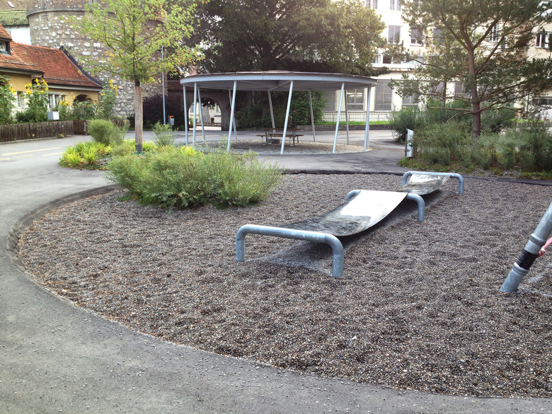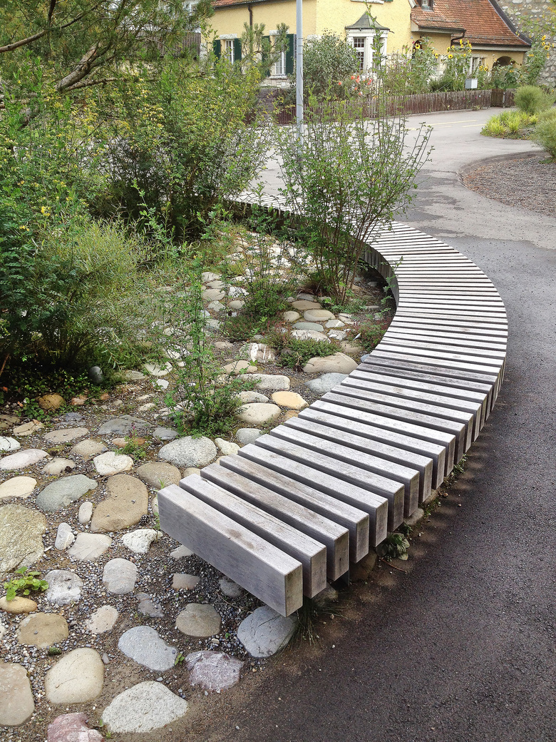 Zusammen bilden Platz und Spielstreifen einen vielfältigen öffentlichen Raum der zugleich während der Schulzeit Teil des Schulareales ist.