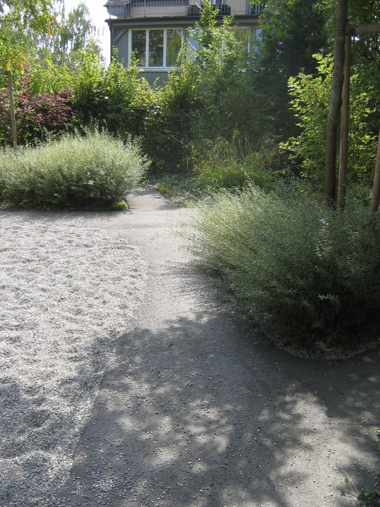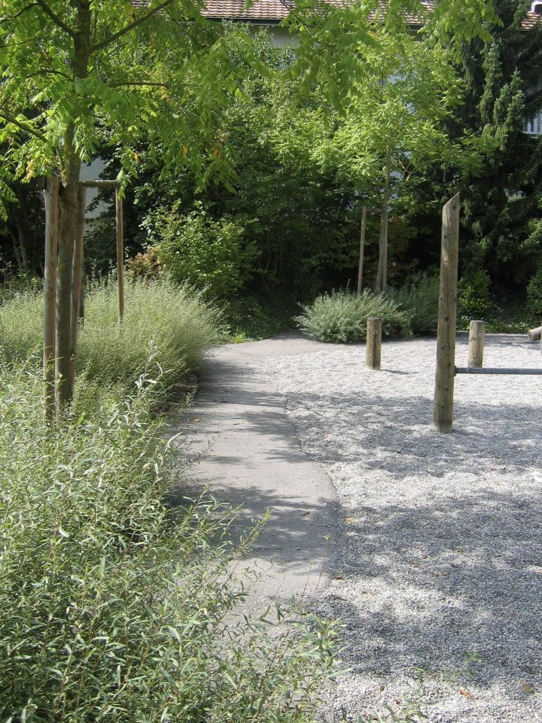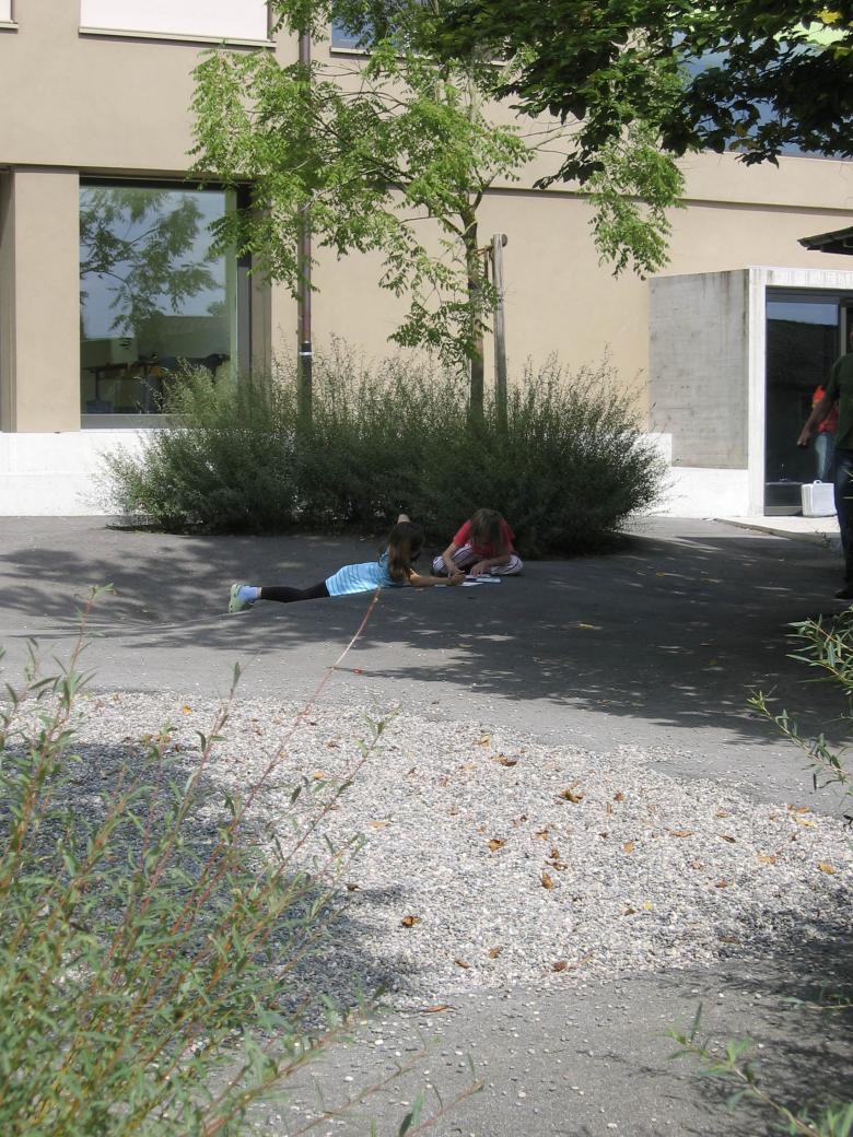 Der umfangreiche Um- und Anbau des Schulhauses bot die Chance, dem angrenzenden kleinen, etwas tristen Pausenplatz mit wenigen Mitteln zu neuer Attraktivität zu verhelfen. In Ergänzung zum bestehenden grossen Asphaltplatz sollten im neuen Pausenhof kleinteiligere Räume entstehen.