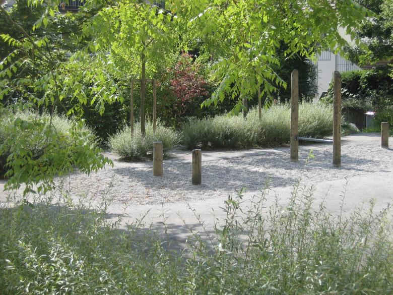 Dadurch entstand ein vielfältig nutzbarer Ort, wo die Kinder springen, rollen, murmeln, malen, sich verstecken, liegen und sich austoben können.