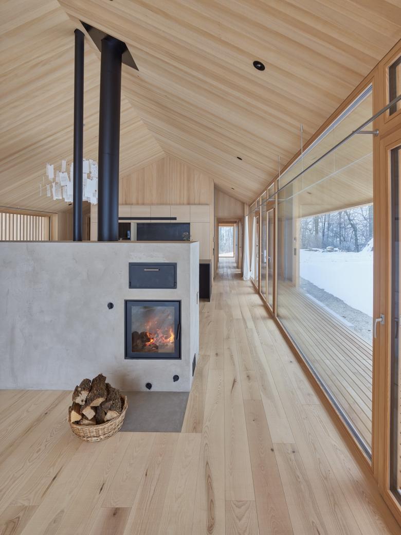 Der Entwurf greift die Typologie des Langhauses auf, die Raumeinheiten fließend aneinandergereiht. Umlaufende Wege verbinden diese innerhalb des frei spürbaren Gebäudevolumens. Das Miteinander im Alltagsleben findet auf der oberen Ebene statt, im Hanggeschoß findet eine kleine Einliegerwohnung für alternative Nutzungsmöglichkeiten Platz. Holzoberflächen prägen die warme Atmosphäre des Hauses, der gemauerte Speicherofen als präsentes Gestaltungselement sorgt des Öfteren für den Duft nach frisch gebackenem Brot.