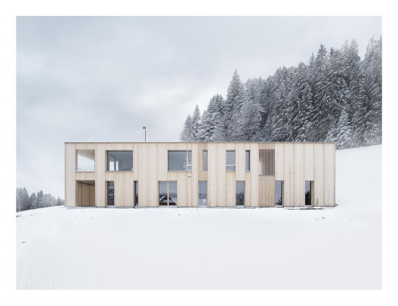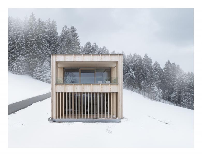 Die Bergparzelle unweit von Bregenz am Südhang des Pfänderstocks bietet einen weitläufigen Blick von den Schweizer Bergen über die Landschaft des Bregenzerwaldes bis hin zum bayrischen Westallgäu. Als ruhiger, markanter Baukörper ergänzt das Haus die Siedlungsstruktur des Weilers.