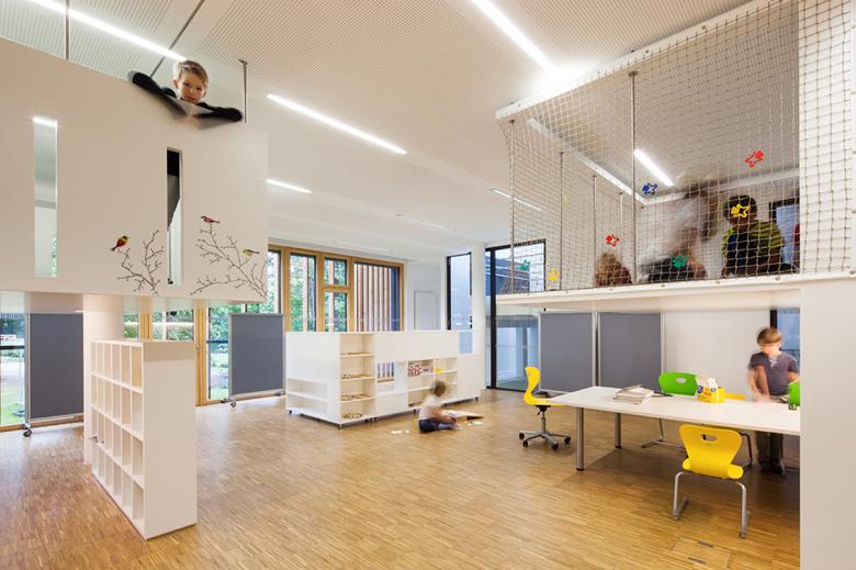 Das neue pädagogische Konzept und gleichberechtigte Lernformen verlangen ein hohes Maß an Flexibilität in der Architektur. Den Kindern wird ein differenziertes Raumerlebnis geboten, ein Lebensraum, den sie sich individuell aneignen, in dem sie sich die »Zwischenräume« nutzbar machen.