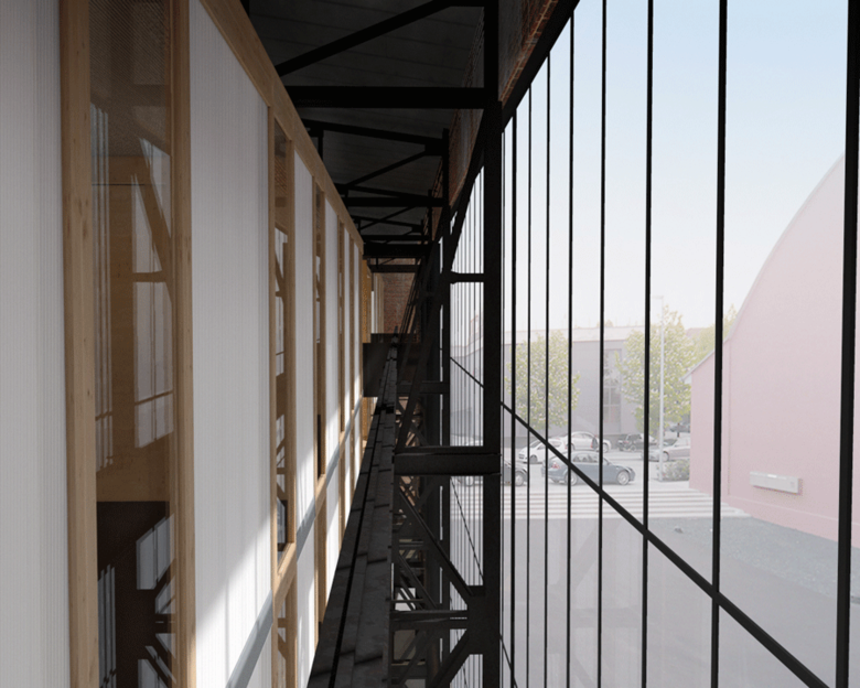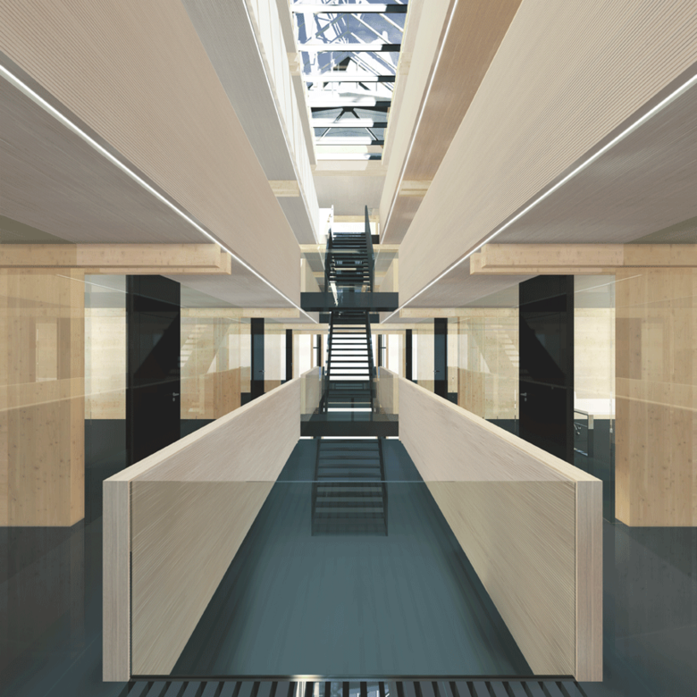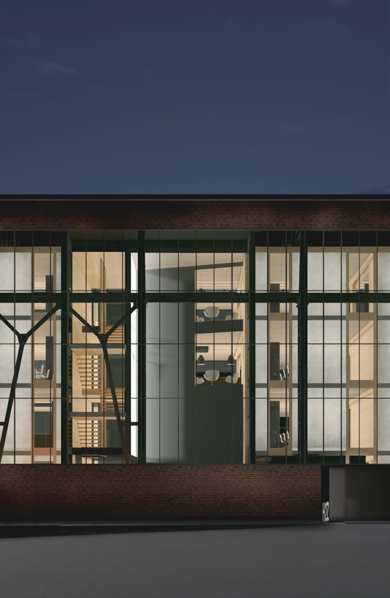 Ein ehemaliges Industriegelände, das seine ursprüngliche produktive Funktion verloren hat, steht für eine Umstrukturierung bereit. Der alten Industriehalle 2Z kommt hierbei die entscheidende Rolle des Katalysators zu. In ihre vorhandene Bausubstanz, die aufgrund ihrer offenen Struktur und hohen Transparenz eine Vielzahl an Nutzungen zulässt, wurde ein 4-geschossiger Holzbau implantiert. Es ist ein ‚Haus-im-Haus’ entstanden, das in hohem Maße der Nachhaltigkeit und dem Verantwortungsbewusstsein gegenüber kommenden Generationen Rechnung trägt.