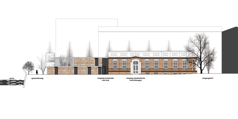 In bevorzugter Lage an der Spree in Berlin-Mitte werden in dem architektur- und medizingeschichtlich bedeutsamen Ensemble eines ehemaligen Pavillonkrankenhauses der Charité Flächen für die Kinderbetreuung sowie für studentische Selbstorganisations- und Beratungsstrukturen geschaffen. Die Humboldt-Universität zu Berlin ermöglicht hiermit in zentraler Lage zwischen Campus Nord und Hauptgebäude ein neues Angebot insbesondere für Studierende mit Kindern. Der eigenständige Charakter des durch Pavillonbauten und Grünflächen geprägten Ortes soll mit der neuen Nutzung und durch hinzugefügte Neubauten transformiert und ausgebaut werden. Besonderer Wert wird dem Erhalt und der sensiblen Einbindung des unter Denkmalschutz stehenden Gebäudebestands beigemessen.