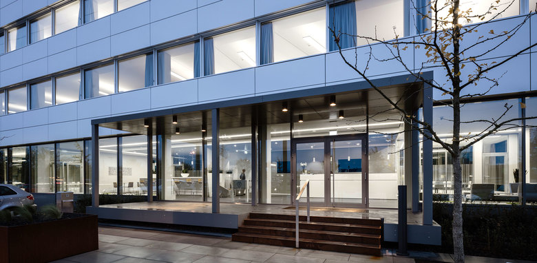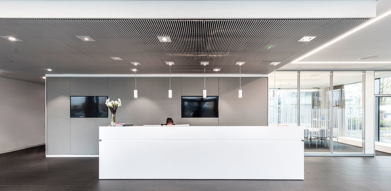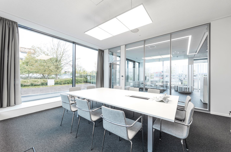 The two storey linear-rectangular, functional building, dating from the 1970s, was completely gutted - leaving only the load-bearing components. Both the ground floor and the two office floors were newly structured. Here, the requirements of modern workplaces, as well as the need for the employees to communicate and cooperate with each other, were taken into account. In the floor-plan design, the floors were treated as 400 m² units for fire protection purposes. This permitted the realisation of a new space concept with open and expansive office structures.