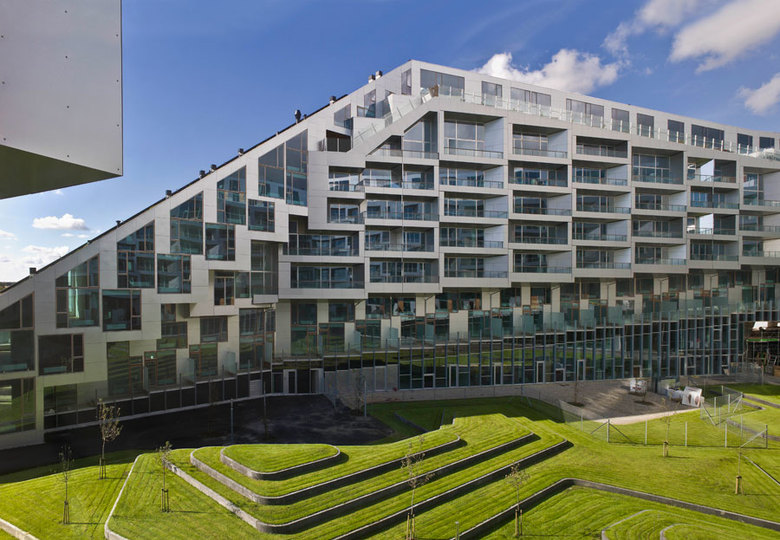 8 House is designed by BIG who has been partly inspired by classic townhouses as well as the open, democratic nature of functionalistic architecture. The architects have designed a long, coherent house with immense differences in height, creating a strong inflow of light and a unique local community with small gardens and pathways that channel your thoughts into mountains in Southern Europe and memories of a childhood home. The bow-shaped building creates two distinct spaces, separated by the centre of the bow which hosts the communal facilities of 500 m2. At the very same spot, the building is penetrated by a 9 meter wide passage that connects the two surrounding city spaces: the park area to the west and the channel area to the east. Instead of dividing the different functions of the building - for both habitation and trades - into separate blocks, the various functions have been spread out horizontally. The apartments are placed at the top while the commercial programme unfolds at the base of the building. As a result, the different horizontal layers have achieved a quality of their own: the apartments benefit from the view, sunlight and fresh air, while the office leases merge with life on the street. This is basically emphasized by the shape of 8 House which is literally ‘hoisted up’ in the North East corner and ‘squeezed down’ at the South West corner, allowing light and air to enter the court yard in the middle.