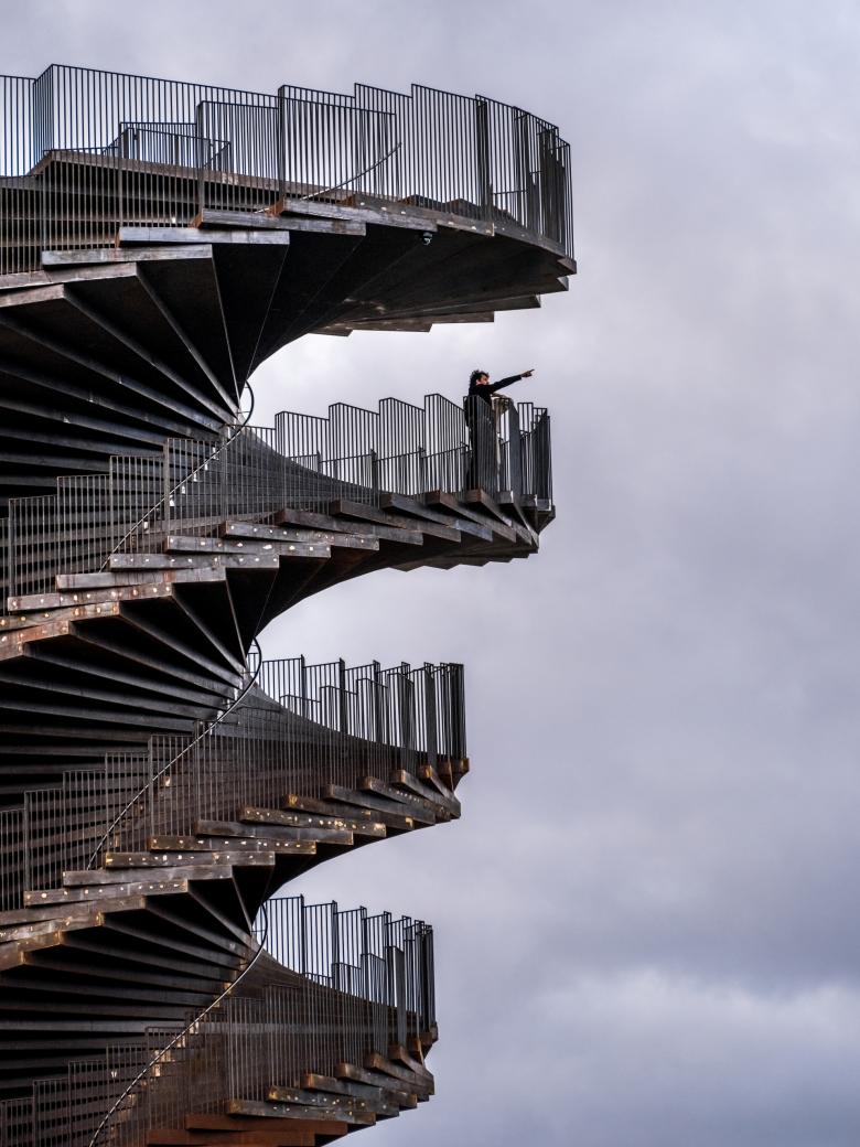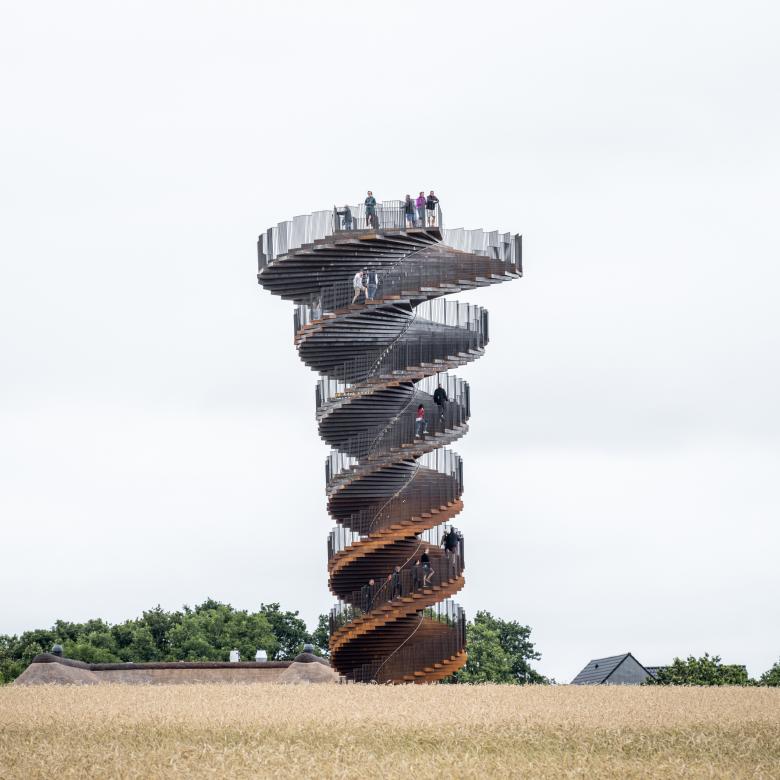 “Marsk tower is a testament to our two decades-long friendship and collaboration with the blacksmiths of Schacks Trapper,” says Bjarke Ingels, Founder and Creative Director, BIG – Bjarke Ingels Group. “The double helix provides two stairs and an elevator with a single stack of rotating steel steps, allowing visitors to ascend and descend in a single spiraling loop from the sand to the sky – connecting the marsh land to the Wadden Sea.”