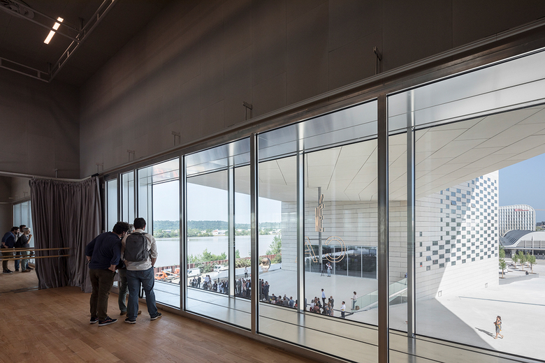 The new 18,000 m2 Maison de l’Économie Créative et de la Culture en Aquitaine, MÉCA, creates a frame for the celebration of contemporary art, film and performances, giving Bordeaux the gift of art-filled public space from the waterfront to the city’s new urban room. Centrally located between the River Garonne and Saint-Jean train station, MÉCA, brings together three regional arts agencies – FRAC for contemporary art, ALCA for cinema, literature and audiovisuals, and OARA for performing arts – into a loop, cementing the UNESCO-listed city as the epicenter for culture.