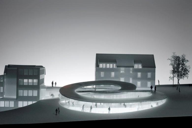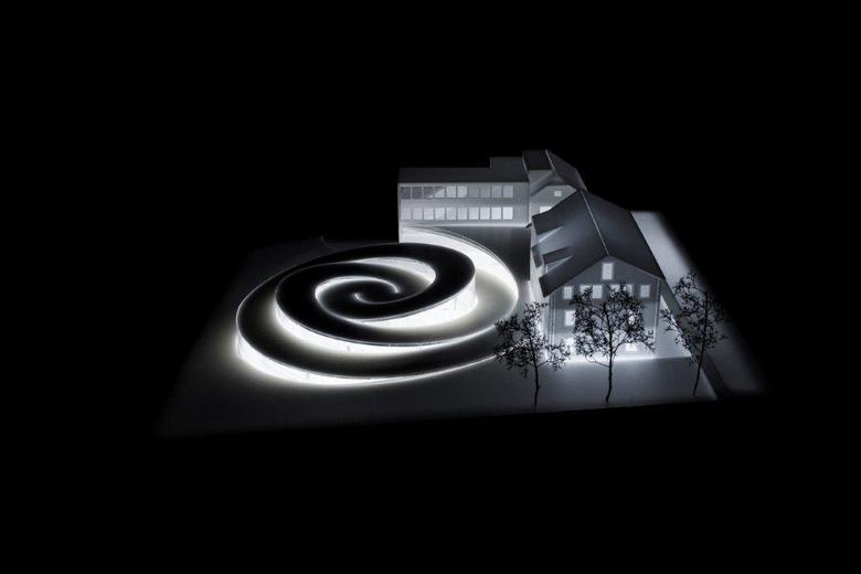 BIG created an intertwined spiral shaped pavilion which is conceived as a storyline for the visitors – blending old and new – and guiding the visitor through a linear sequence of spaces and events, from the entrance through lounges, galleries and workshops, to the attic of the heritage building in the workshop where it all began.
