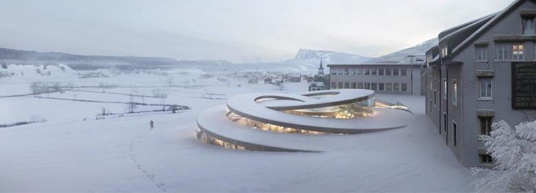 Team BIG, HG Merz, Luchinger & Meyer and Muller Illien's design is rooted in the origins of the family owned company, a history of watchmaking that goes back centuries and is nested in the nature and culture of the Vallée de Joux. Surrounded by the historical workshops in Le Brassus in the heart of La Vallée de Joux, the new museum called Maison des Fondateurs, will be imbedded in the landscape - reuniting the buildings with the undulating fields of the valley.