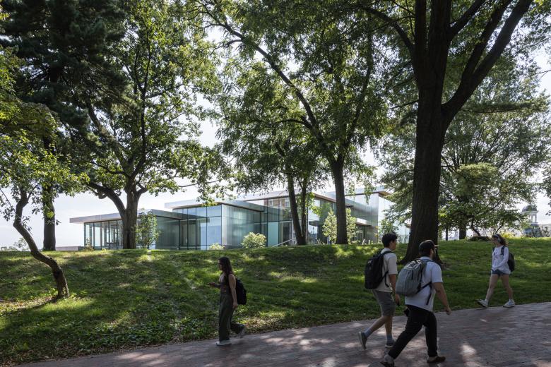 Carefully integrated into a hill along Charles Street, the Bloomberg Student Center connects the main Homewood campus with student housing across the street. Its four accessible levels feature patios, indoor-outdoor gathering areas, outdoor seating, and green spaces created by MVVA—who are known for their innovative work on projects including the Brooklyn Bridge Park, Presidential Centers for both George W. Bush and Barack Obama, and the National September 11 Memorial & Museum at the World Trade Center.