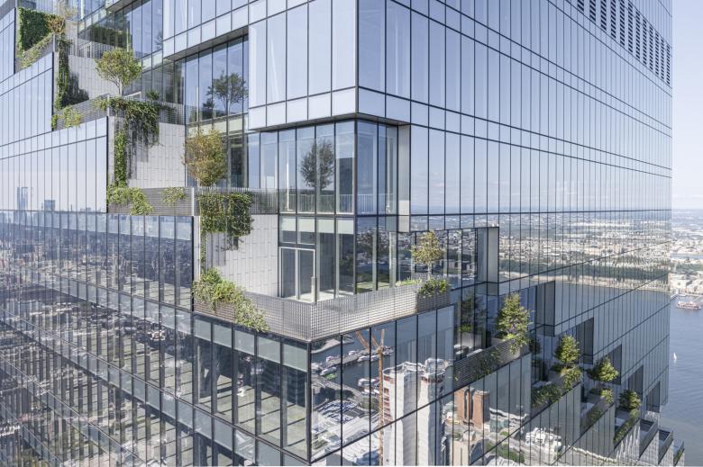 With approximately 13,000 square feet of outdoor space, a landscape of The Spiral’s size has never been installed at or above 300 feet elevation in New York City. Most of the plant species on the ground cover are native to the American prairie, making them resistant to high winds and droughts.