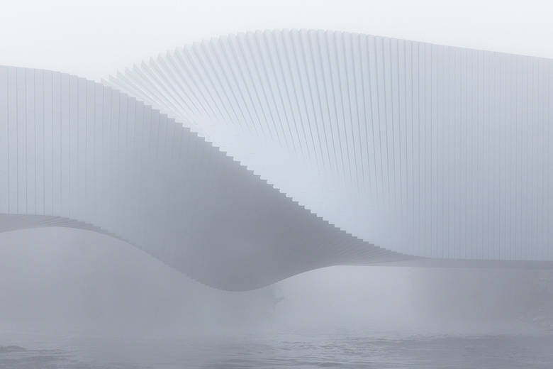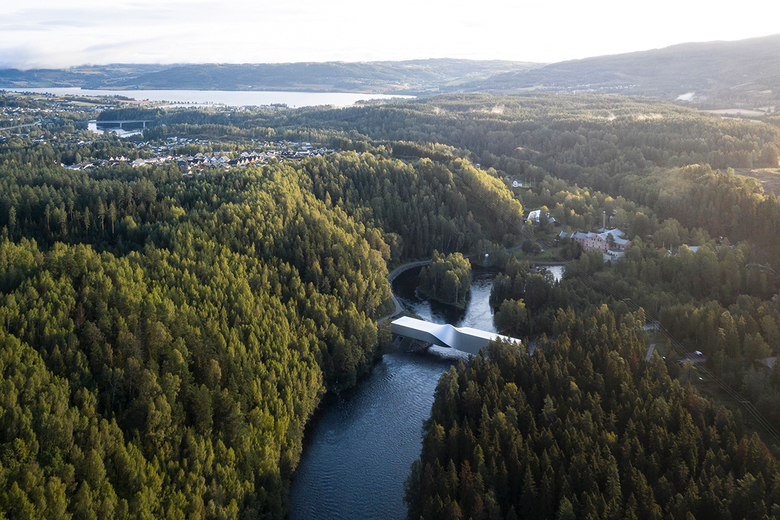 Traversing the winding Randselva river, BIG’s first project in Norway, The Twist, opens as an inhabitable bridge torqued at its center, forming a new journey and art piece within the Kistefos Sculpture Park in Jevnaker, Norway. Kistefos’ new 1,000m2 contemporary art institution doubles as infrastructure to connect two forested riverbanks, completing the cultural route through northern Europe’s largest sculpture park.