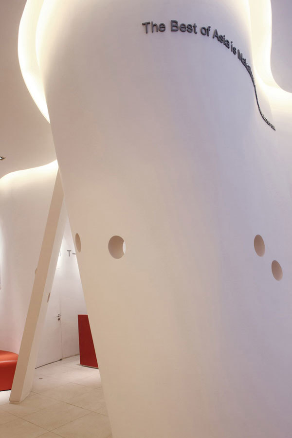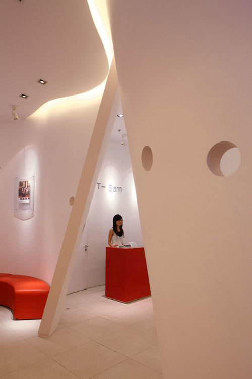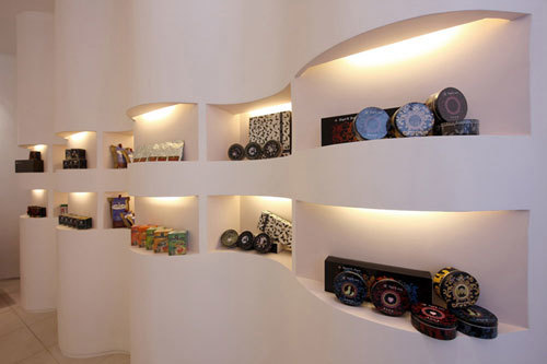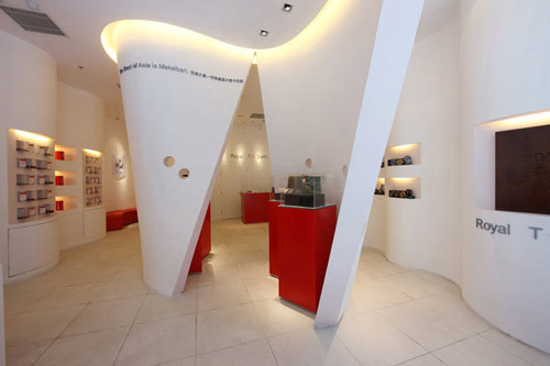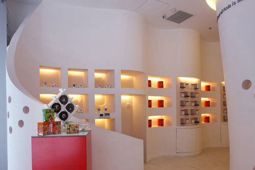 A small teahouse with the total floor area of 60 sqm in the famous commercial district of Beijing. The space contains the areas for exhibiting tealeaf, tasting tea and business negotiation. We put several different functions in a small space together divided by curved wall.