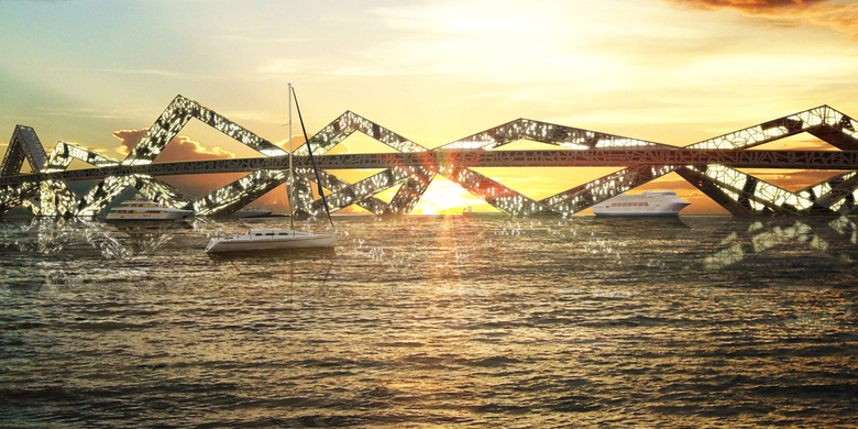 The municipal government does not have the resources to build a three-kilometer bridge and never will. By transforming its supporting structure into habitable spaces, private equity can be invited for its construction. This way, developers can acquire and sell on prime seafront real estate and the city solves one of its chief problems. Architecture as a city problem solver.
