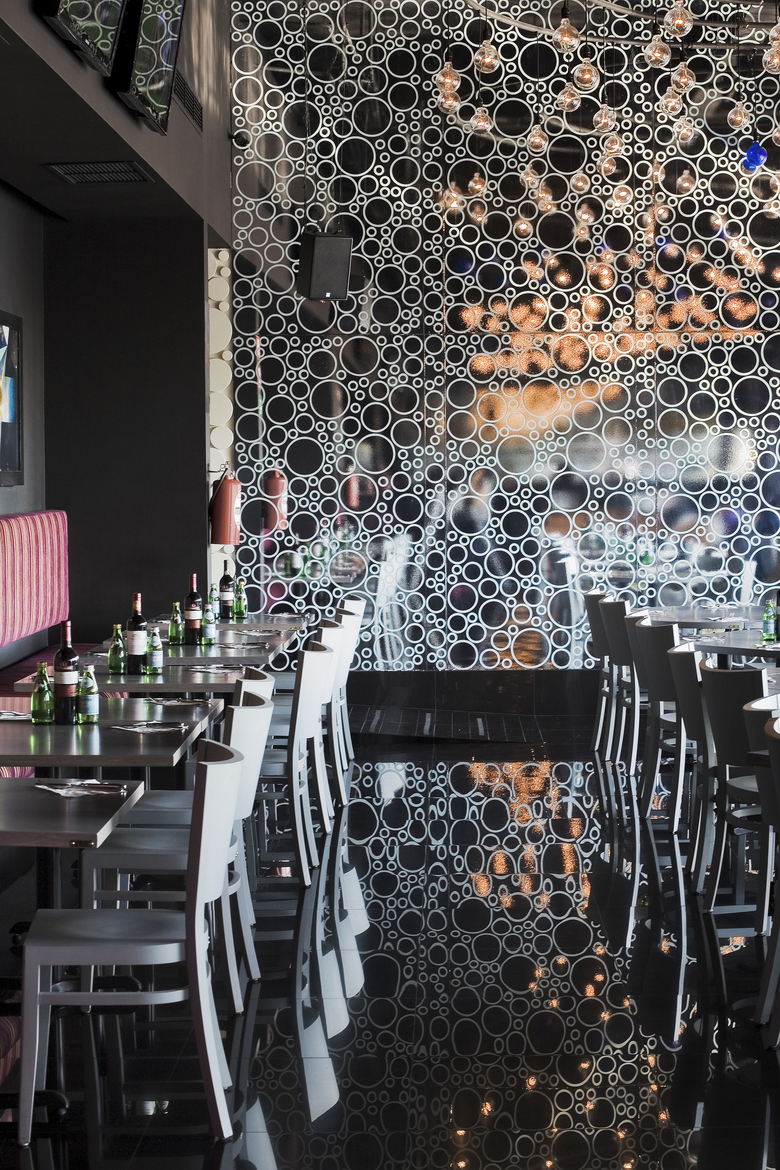 People living in Satélite have always been considered outsiders. This complex makes them invade the city center’s restaurants, shops, bars and nightclubs in a frustrated need to experience a sense of belonging. This realization made the owners of a very chic and successful restaurant and nightclub consider opening a branch of their business in this part of the city. Their reasoning was: “Why not take a piece of the coolness the people in Satélite so desperately seek to their home turf?” The design premise behind the Hookah Lounge is a fusion of a traditional Arabic style with a contemporary look.