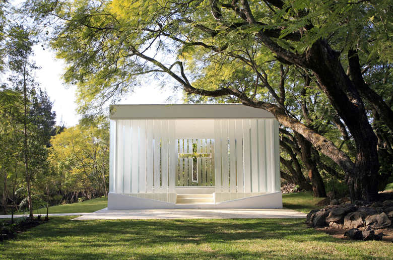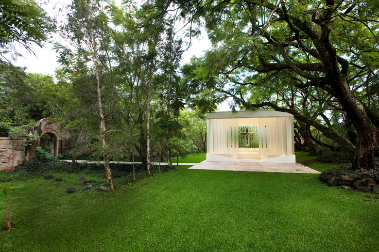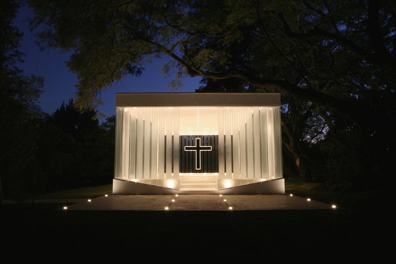 The client brief was pretty simple: a colonial-style closed-wall masonry chapel that blended with the surrounding architecture. This deeply troubled us… First of all we did not believe in styles and second, it would be a shame to close the chapel to the surrounding beautiful garden. So we decided to do the complete opposite: an open glass chapel that contrasted with its surroundings. When we finally won the clients over to our design we realized we had a big problem: the was in four months!