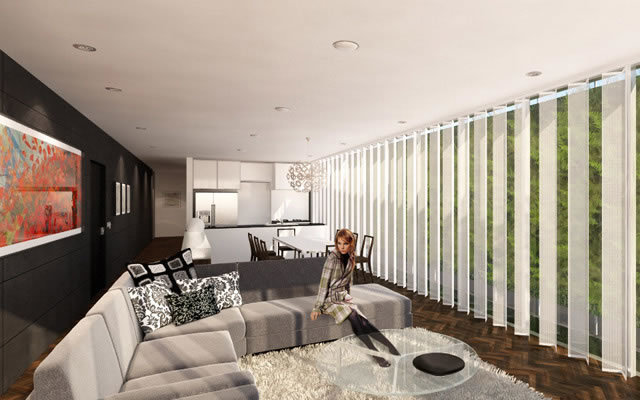 The vertical garden gives absolute privacy to the interior spaces and achieves the oxymoron “private openness”, apparently a contradiction in terms, but an ingenious solution that allows the inhabitants to have a full experience of the exterior and its natural elements without having to worry about privacy issues: nosy neighbors and prying eyes from the street.