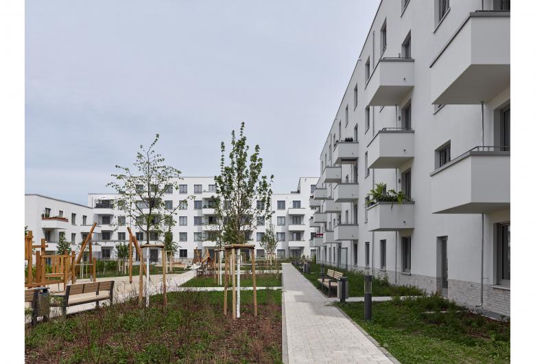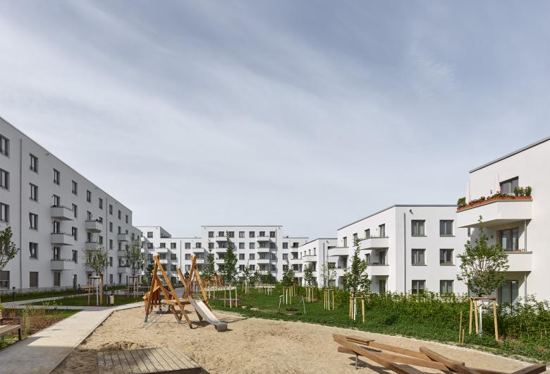 Vom Single bis zur Großfamilie, von der Kita bis zum Paar – in dieser neuen Siedlung im Berliner Ortsteil Lankwitz ist für alle Platz. Auf dem Gelände einer abgerissenen Schule entwickeln BFA gemeinsam mit BSL 286 Wohneinheiten, die sich dem B-Plan folgend differenziert in die Umgebung einfügt. Im Süden komplettieren die Gebäude eine Blockstruktur aus den 1930er Jahren, im Norden übernehmen einzelne Punkthäuser die Bebauung auf der anderen Straßenseite. Gebäuderiegel im Osten und Westen klammern einen beruhigten und begrünten Innenhof ein.
