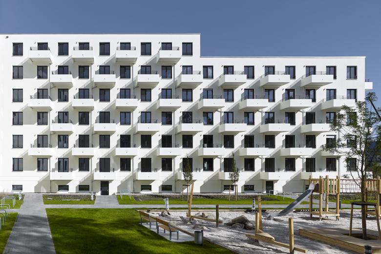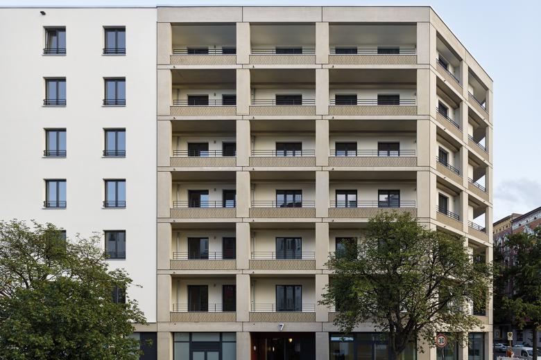 BFA has developed a new multi-family building at Berlin’s centrally located, popular urban park, Mauerpark. This architectural design adopts the large-scale with proportional style building typology, which is customary of the area. The five entrances have been combined into one stately building. Furthermore, the building is structured in such a way that the facades are designed differently to maximize their exposure to sunlight. Further optimizing the positive qualities of the design, a panel has been placed in front of the building on the busy street side and spacious balconies facing the green inner courtyard have been attached on the side of the Mauerpark.