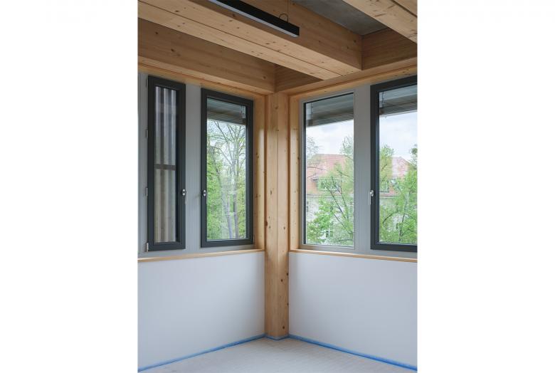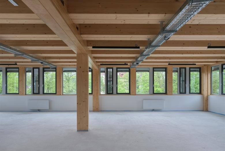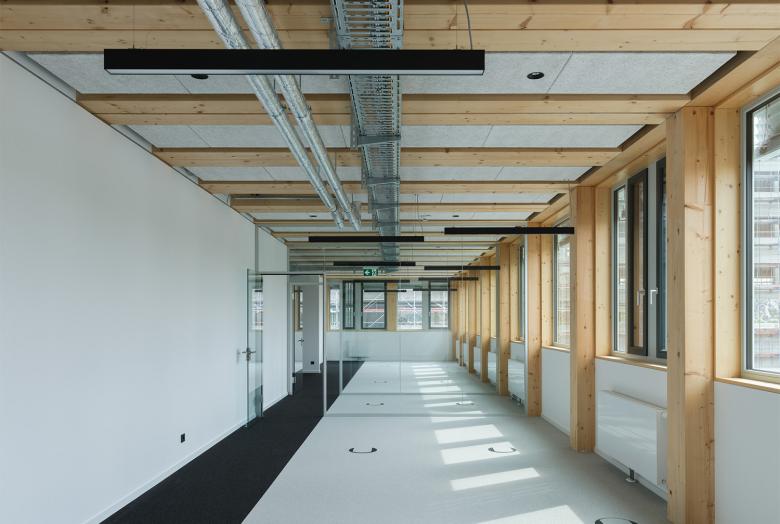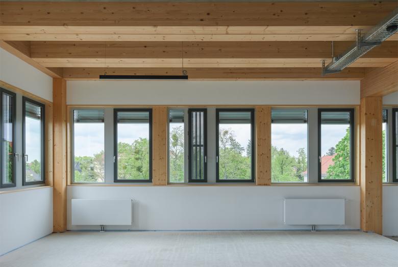 Science and business come together at the Life-Science Campus FUBIC in Berlin-Lichterfelde. 7,200 square meters of laboratory, work, and communication spaces were built here: the FUHUB. Laboratories and offices will be housed in the four-story north wing, while the south wing have three floors of office space. A sprawling two-story hall in between will accommodate the reception and communication area. Users can also interact on the beautiful and extensive greened rooftop terrace. Remaining roof areas are landscaped with biodiversity as a priority and equipped with photovoltaic systems. Photovoltaic systems use the direct conversion of light into electricity, all at the atomic level. The photovoltaic system generates the majority of the required operational electricity, and the entire heating will be ensured through heat pumps. A cistern collects rainwater for irrigation of the green areas. The CO2-conserving wood-hybrid construction proudly claims Platinum certification according to DGNB.