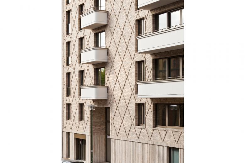 In Berlin’s beloved Kollwitz-Kiez, BFA has acquired a formerly vacant lot, and ingeniously utilized it for a premium-quality, contemporary residential building in the style of classic modernism. The facade facing the street emulates the surrounding industrial architecture and presents itself with an ornamented brick surface, a draped concrete basement, an inviting entrance area and opulent balconies. The rear of the building is more subdued, yet dominated by a soft curve, which lends itself to modern ingenuity.
