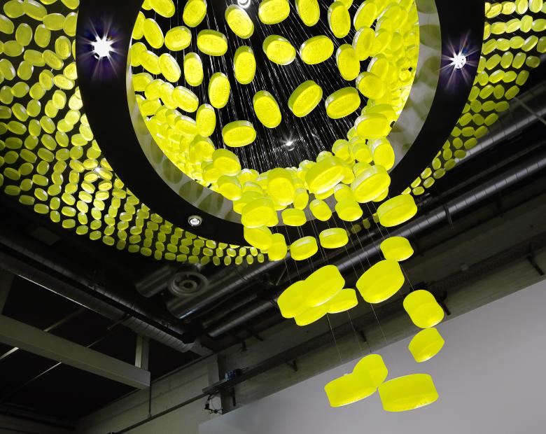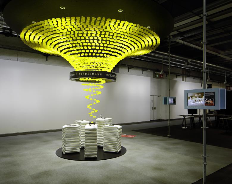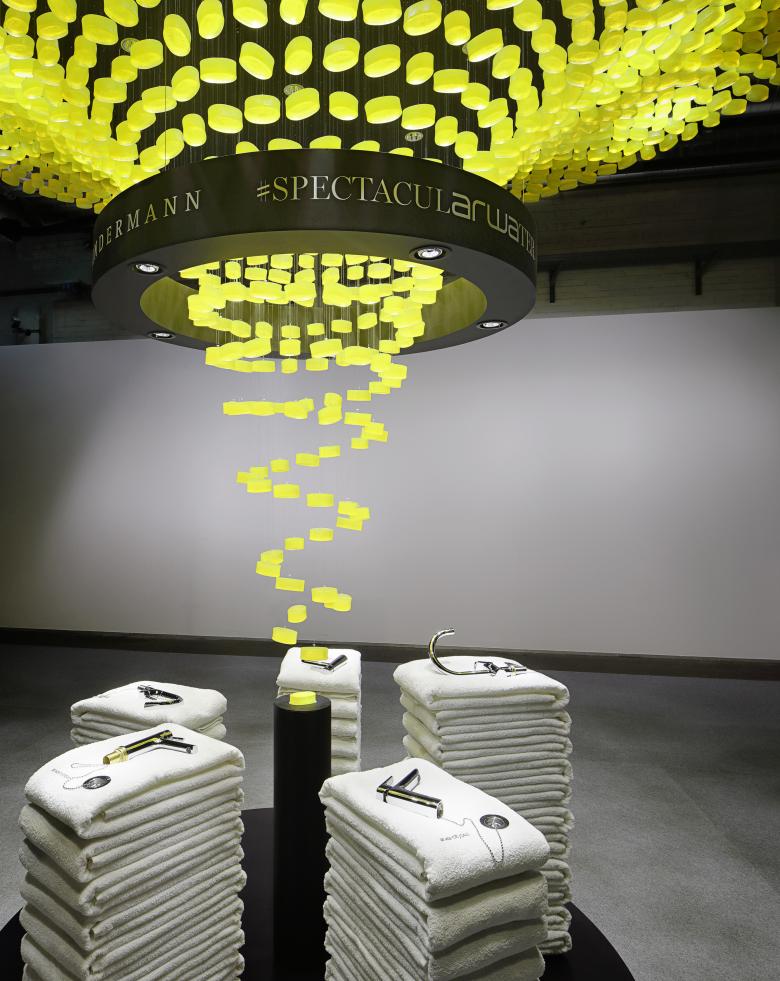 The Zürich-based interior designers created a magnificent chandelier for Swiss faucet manufacturer arwa in the shape of a suspended whirlpool. The chandelier consists of 1,200 glycerine soaps from Swiss company Mettler and symbolises both the water that flows from faucets and shower heads and also water as it whirls down the plughole when a basin or bath is emptied. Plus its scent adds an olfactory dimension to the space.