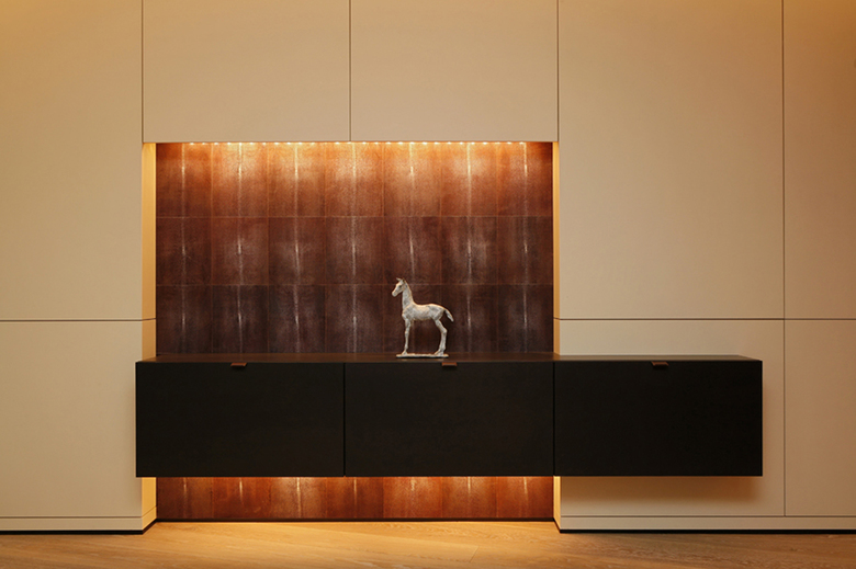 In einem Neubau mit sechs Eigentumswohnungen an der Hamburger Elbchaussee direkt am Elbhang befindet sich das Appartement, welches das Büro Korb für ein Ehepaar aus Wiesbaden gestaltet hat. Die Bauherren hatten die ca. 180 qm große Wohnung im Rohbauzustand gekauft und das Büro Korb mit der Grundrissplanung sowie der kompletten Gestaltung und Ausführungsplanung aller fest installierten Einbauten und Möbel beauftragt.