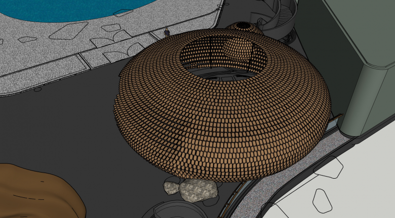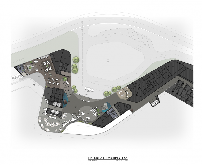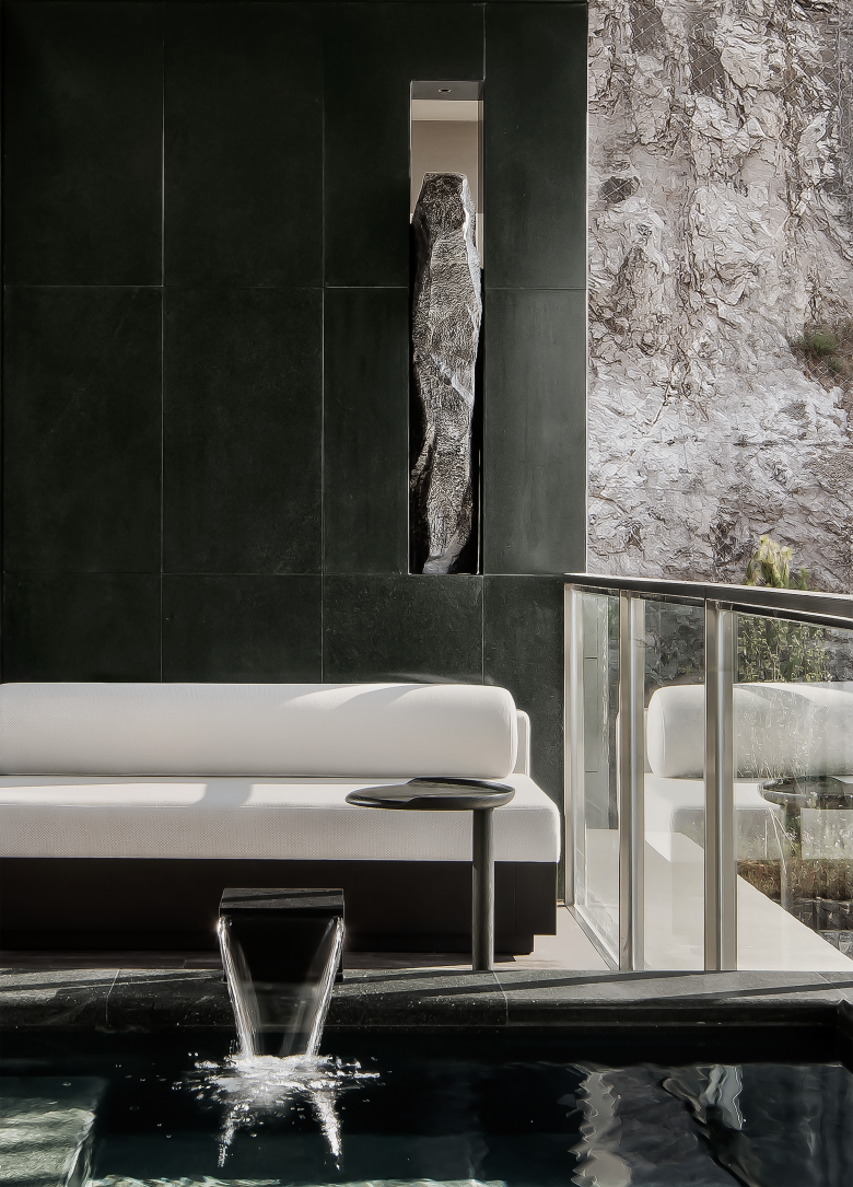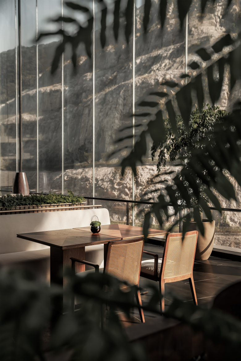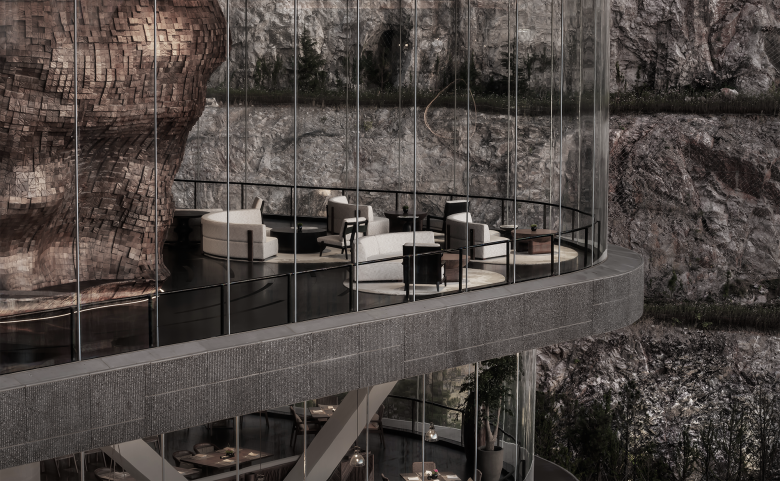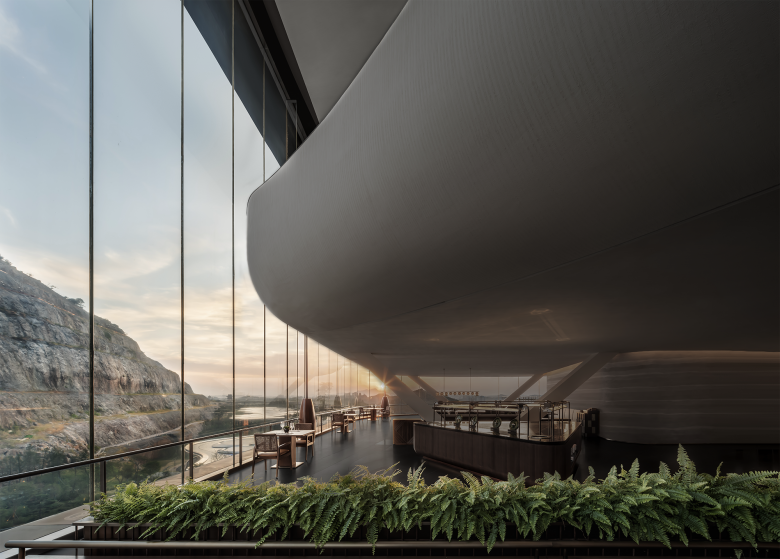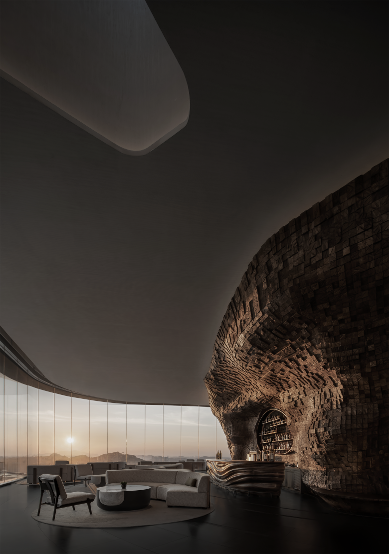 Taking advantage of the depth and variations of the valley, the space is curved and cut to present a natural scale and inclusiveness, making the guests feel as if they're surrounded by a natural canyon.