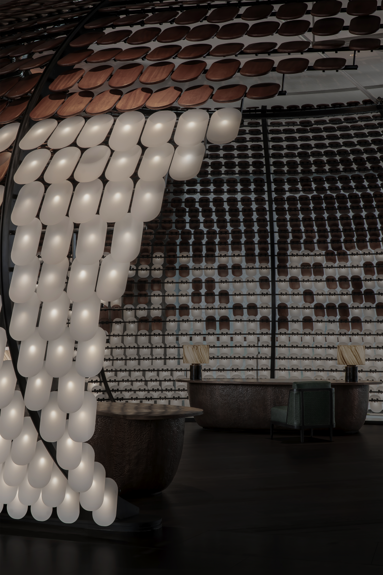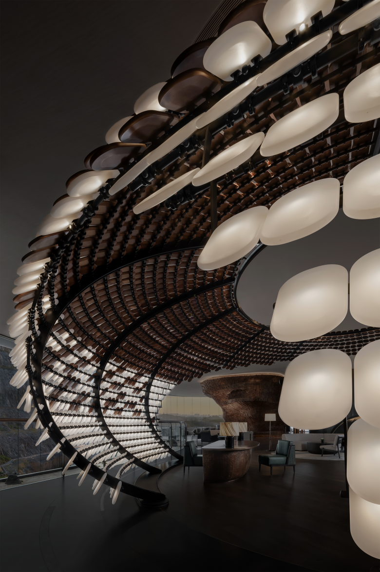 Based on the site's conditions and the design intention, the designers created a "Valley of light" in the lobby bar.