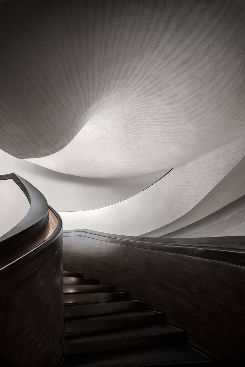 The curved form makes the space soft and rounded. The reshaped space reveals a visual sense of metamorphosis and amazement. It resembles a pair of open arms, giving a home-like sense of belonging.