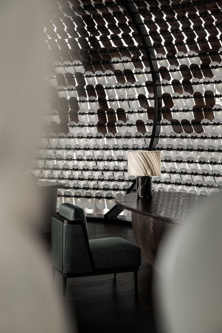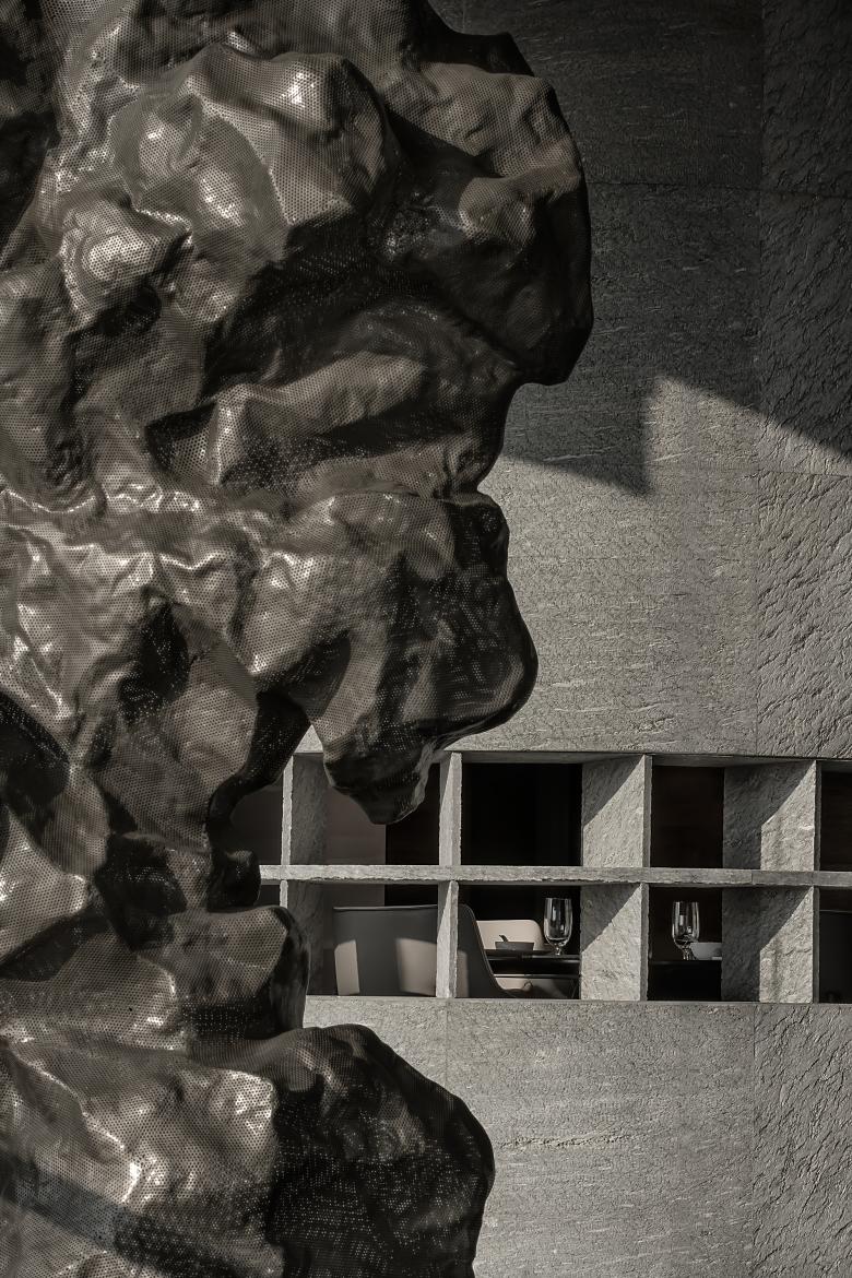 The design extracts the mysterious forest elements of Tangshan Mountain, and transforms them into the patterns of screens, which separate yet connect different areas. Black and white, hardness and softness, implicit charm and noticeable strength, delicate grain and rough textures, are balanced in harmony.