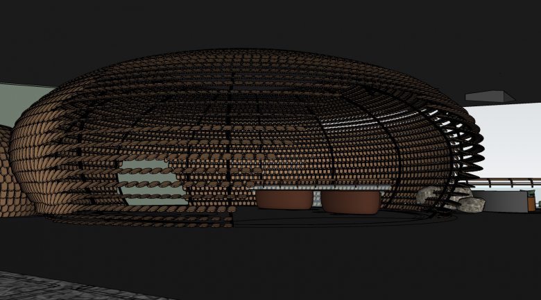 "Cocoon" is the main form in the unified spatial context. With simple lines and layered weaved bamboo elements, the space seems to return to the origin of human beings and nurture a new life in the mother-like dreamland.