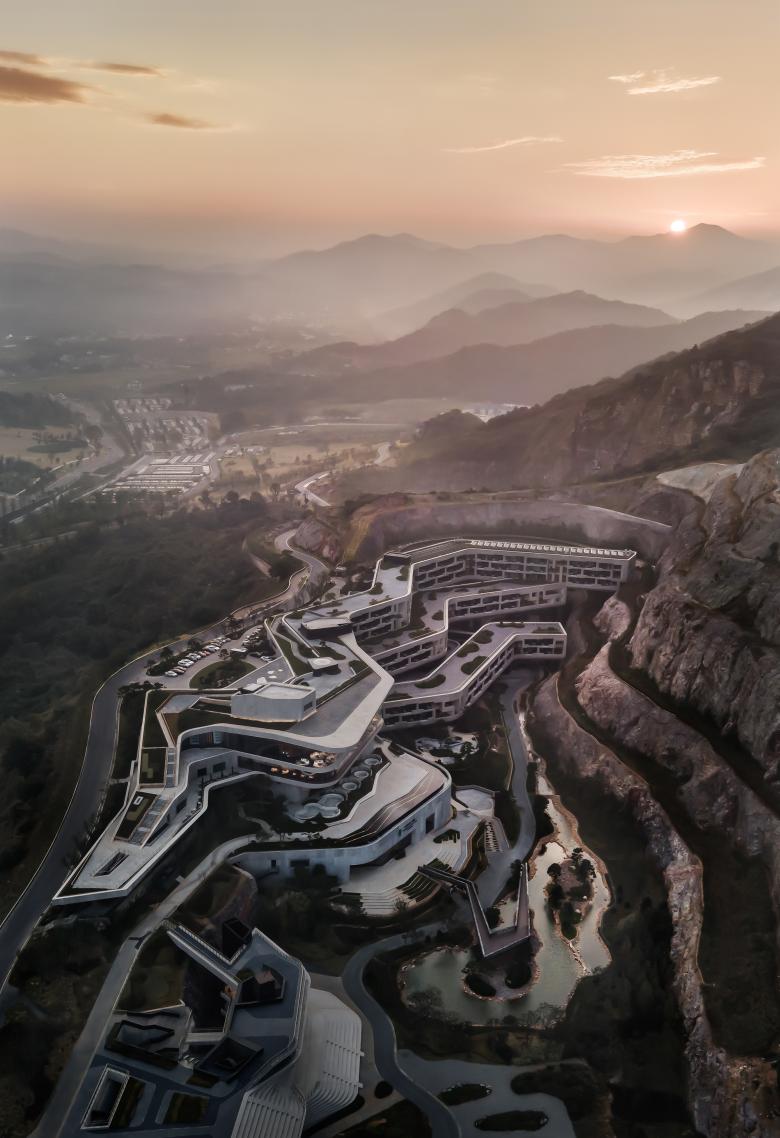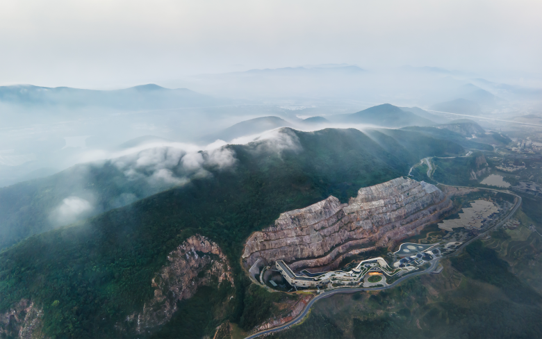 Banyan Tree Nanjing Garden Expo is a luxury hotel located on Tangshan Mountain, which was once a paradise dense with clouds and mists. However, the exploitation and destruction by humans have stripped its vegetation, changed the geography, eroded the soil, and damaged landscape, turning Tangshan Mountain into devastated industrial ruins.