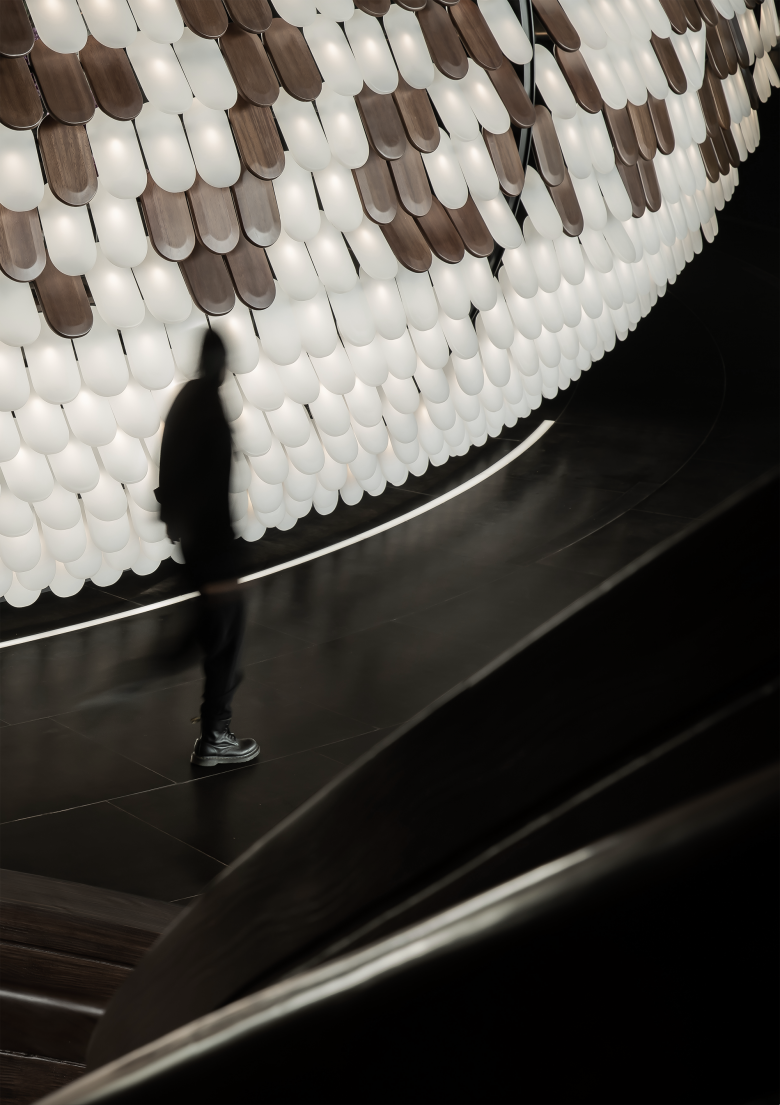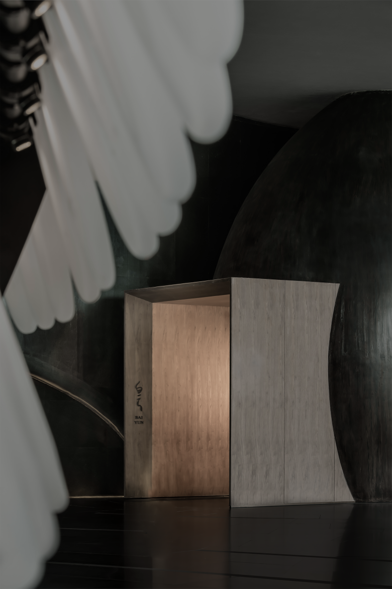 The gate of the Chinese restaurant echoes the lobby's concept of "breaking through the cocoon for rebirth", and opens another journey behind the door. It not only ensures the unity of the design, but also enhances the immersive experience of the guests.