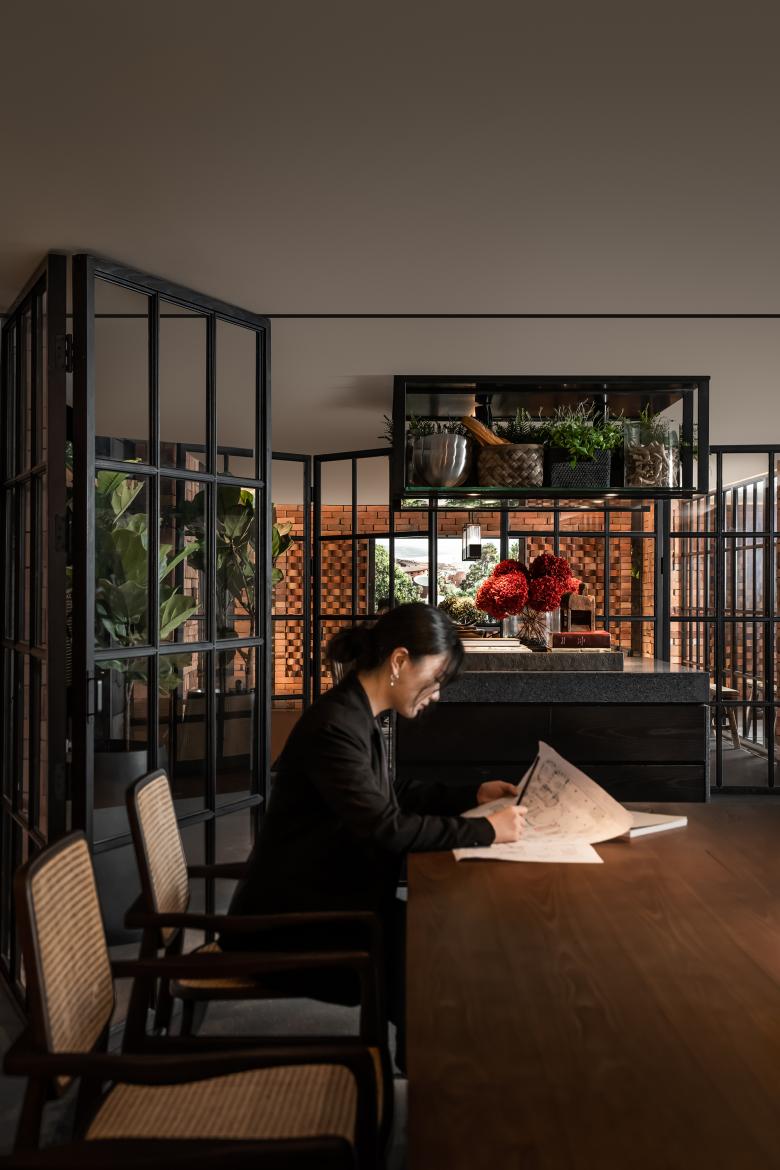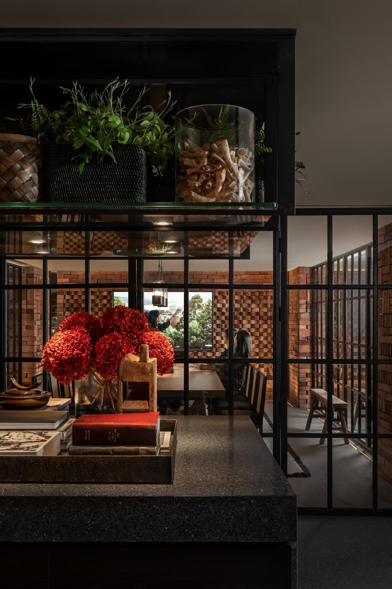 "We hope everyone is interested and free in such a space, where the soul will be spontaneous, real, and appealing." The minimalist red bricks in the pantry symbolize the desire for the essence of things and balanced emotions, an attitude of pursuing aesthetics in the most comfortable environment.