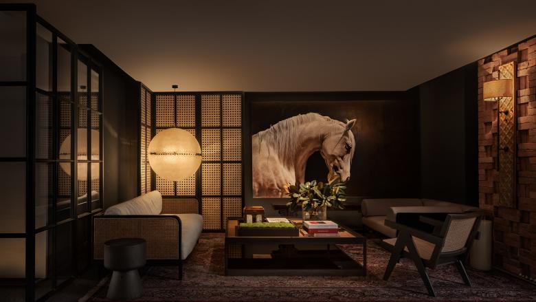 The ideal lifestyle represents one's dream and ambitions. The imagery of horse is invoked to interpret the unique and daring atmosphere of the space.