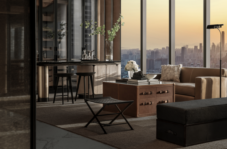 Situated at the busiest and prosperous commercial hub of Beijing, One Sanlitun soars up into the sky and enjoys a rare serene ambience. In the skyscraper, CCD conceives a series of luxury serviced apartments themed on century-old brands. The project One Sanlitun · Bottega Veneta is one of those deluxe apartments. Based on the understanding of international top-class luxury homes, CCD incorporates Bottega Veneta's classical elements and understated aesthetics into the spatial design, to create a luxury yet unpretentious home that pays tribute to classics.