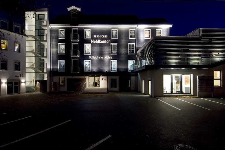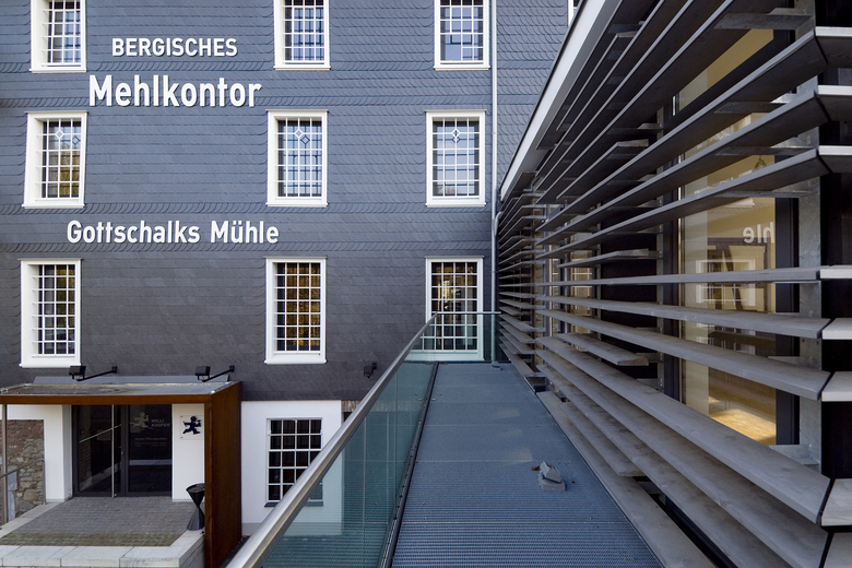 Das denkmalgeschützte Gebäudeensemble der Gottschalks Mühle liegt - städtebaulich in exponierter Lage - unmittelbar am Rand der Hildener Innenstadt.