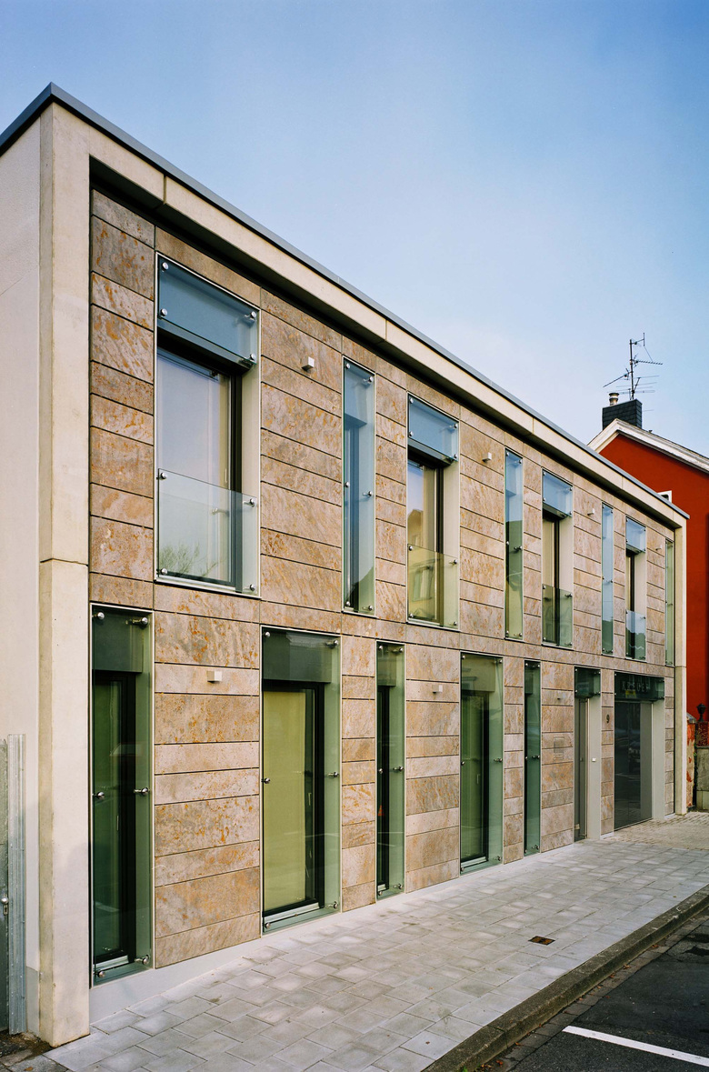 Die Traufhöhe des Nachbargebäudes aufnehmend, ist das neue Gebäude in den städtebaulichen Kontext integriert.
