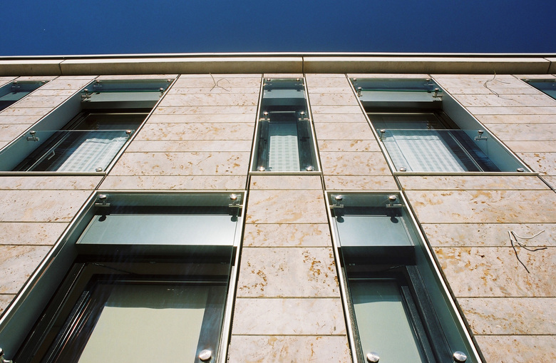 Der Wechsel von schmalen und breiten Fensterelementen erzeugt ein vielschichtiges und differenziertes Erscheinungsbild.