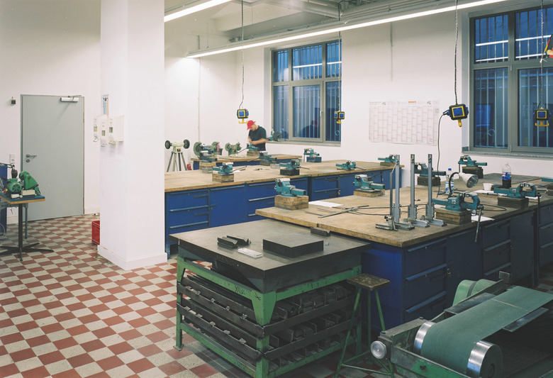 Das Raumprogramm sah auf ca. 1.200 qm eine Metallbauwerkstatt und ein Möbellager im Erdgeschoss und Büro- und Schulungsräume im Obergeschoss vor.