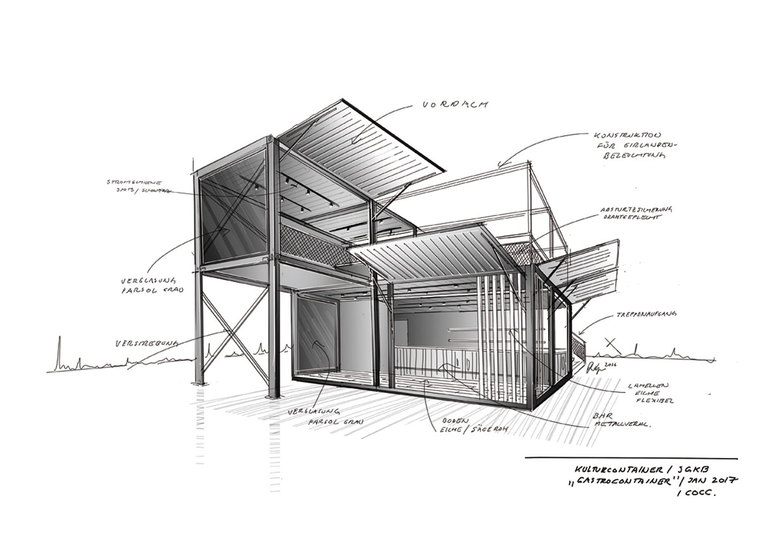 Schiffscontainer als ideale Lösung für ein transportables und variables Projekt, bieten die nötige Infrastruktur und sind vom Design und der Funktionalität her so ausgestattet, dass den Anwohnern und Besuchern ein unvergessliches Erlebnis geboten werden kann. Als eines von fünf prämierten Leuchtturmprojekten soll dieses Projekt im Sommer 2018 auf Reisen gehen.